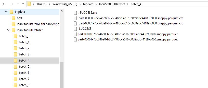 loanStatFullDataset.write().mode(SaveMode.Append).parquet("/bigdata/loanStatFullDataset" + "/batch_" + batchNumber.get());