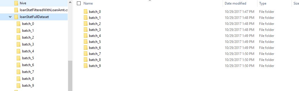 Finally, it’s worth noting that there are a total of 10 batches of data and each one of them was written to the disk in the Parquet format as seen in the image below.